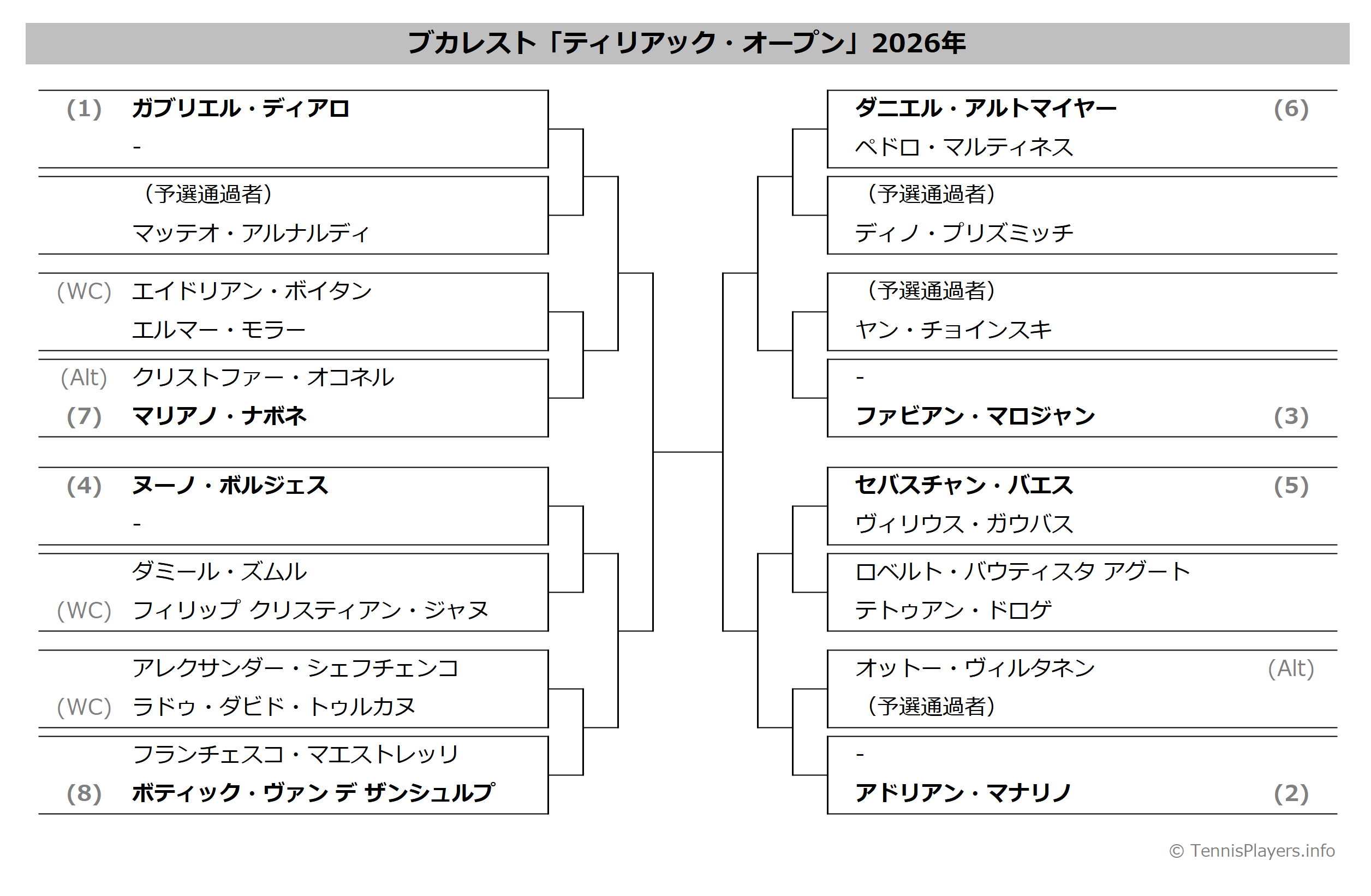 ブカレスト「ティリアック・オープン」2025年トーナメント表(ドロー)結果あり・全出場選手:バエス・Bアグート他出場