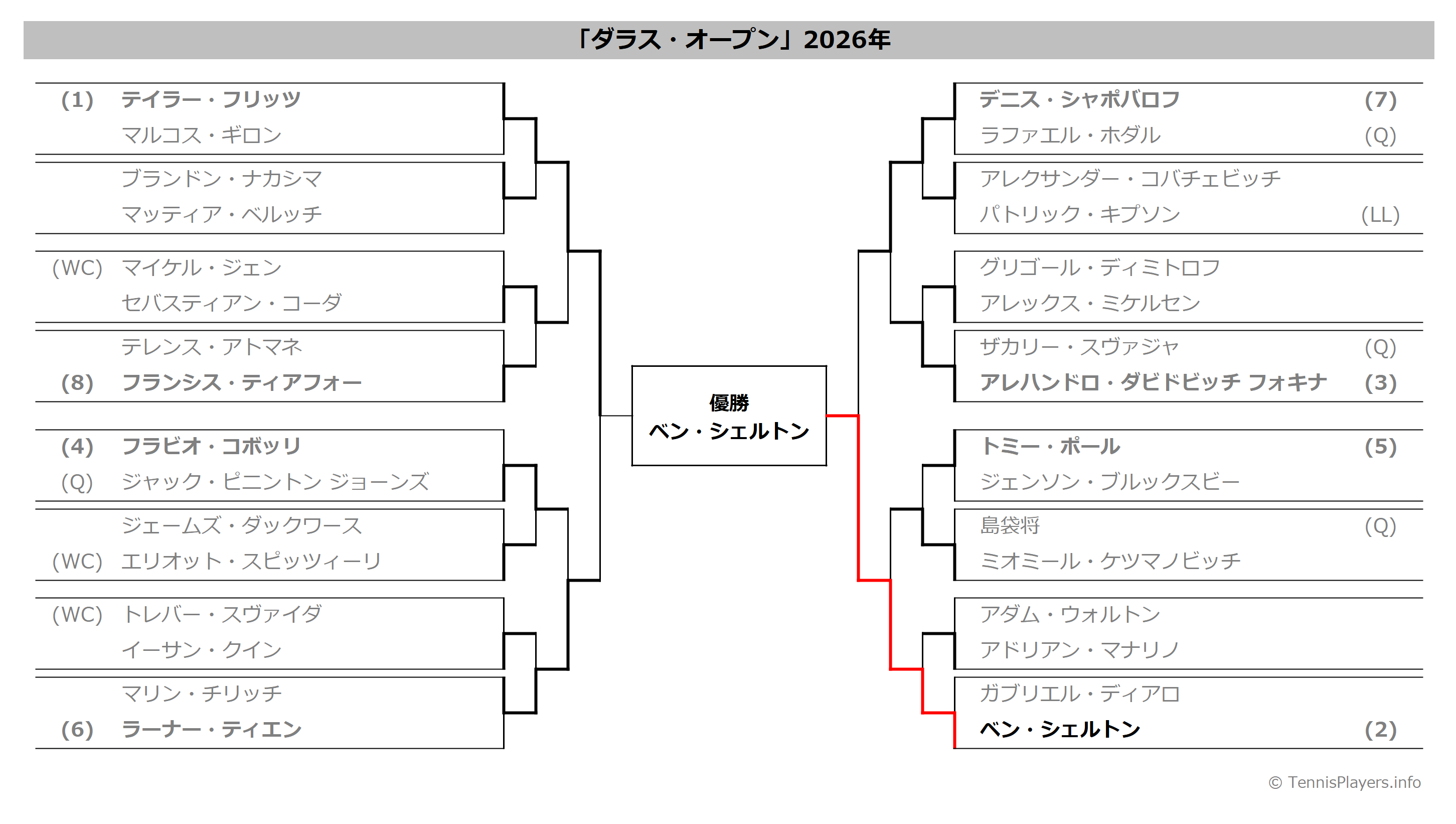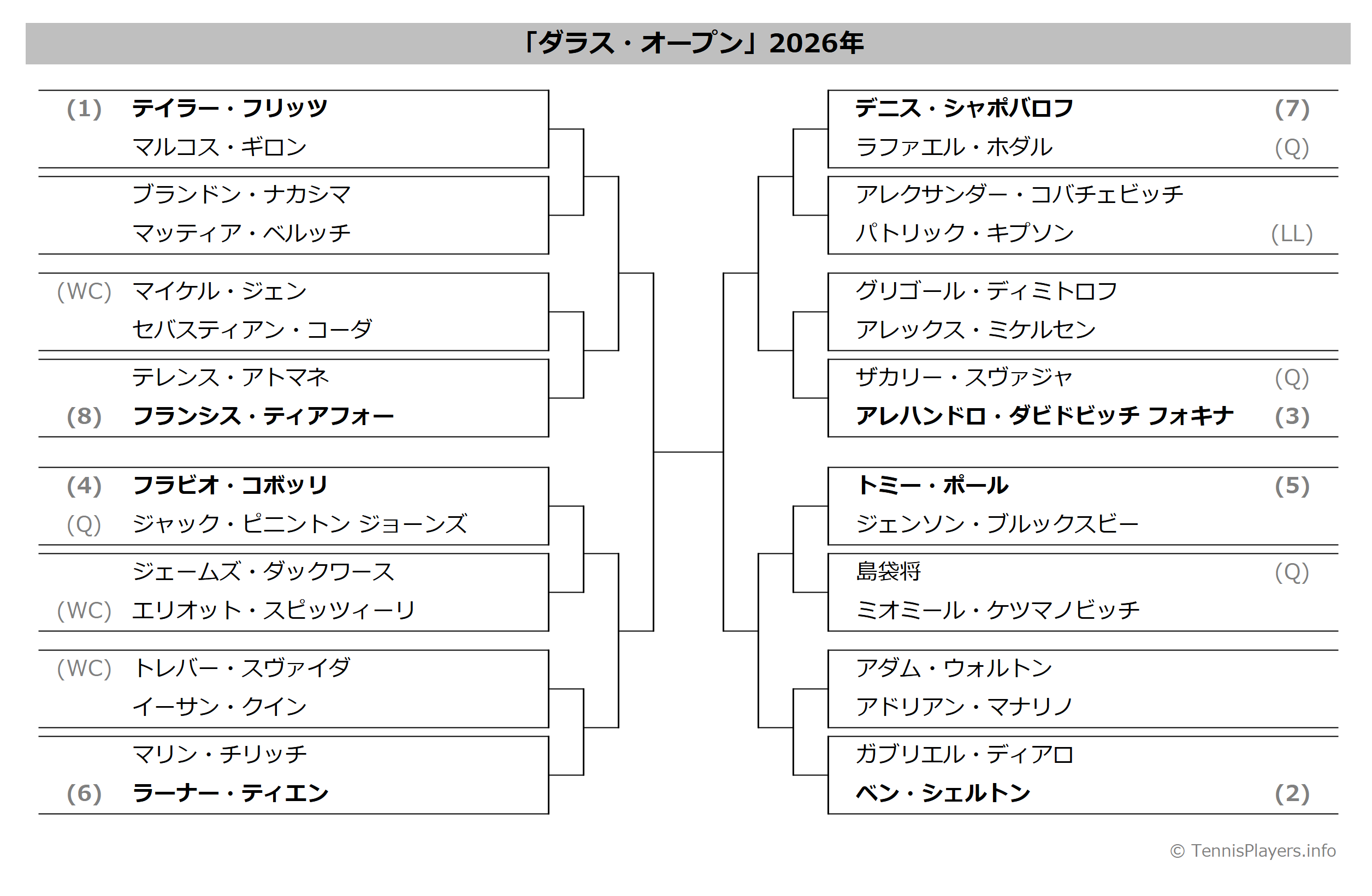 「ダラス・オープン」2026年トーナメント表(ドロー)結果あり