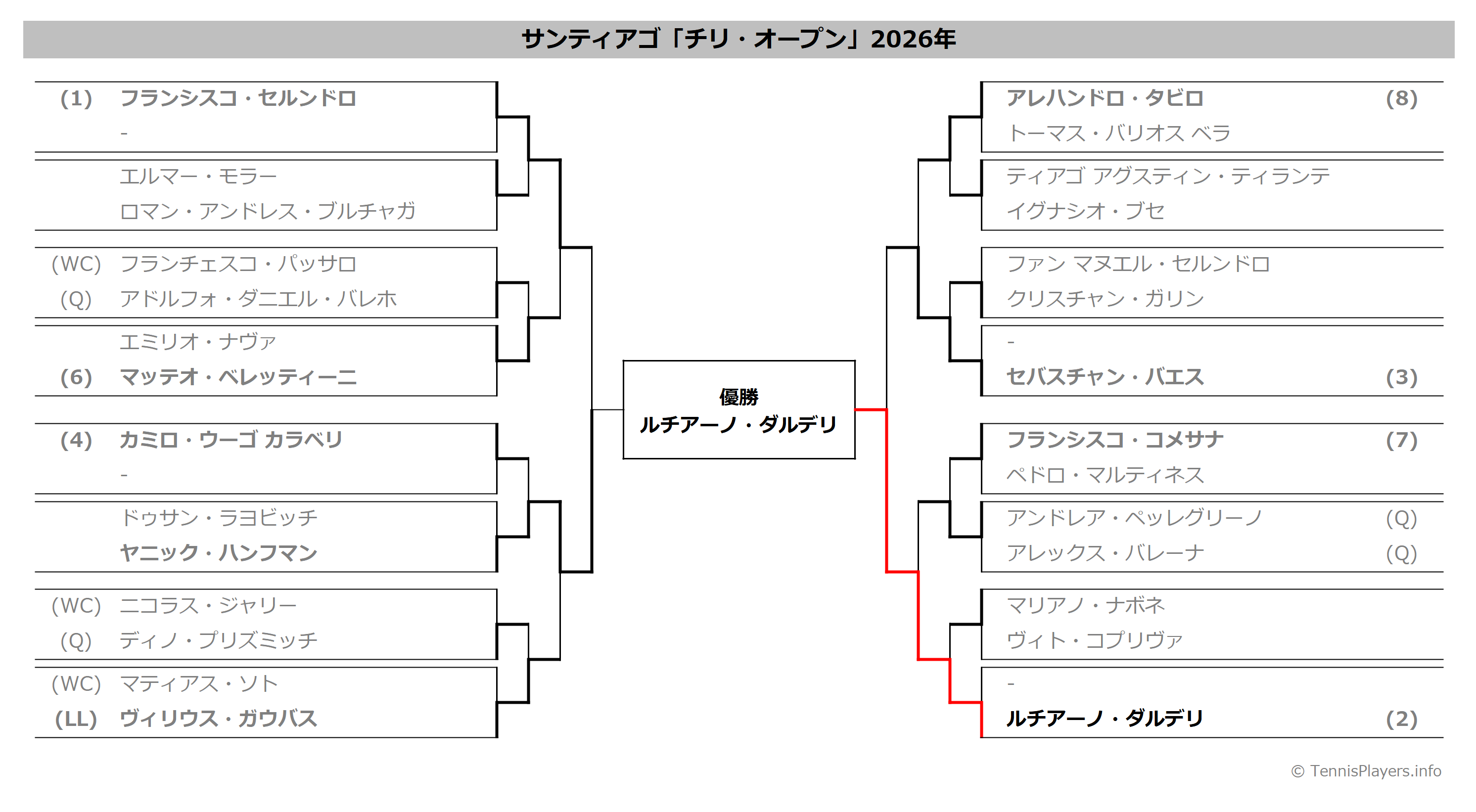 サンティアゴ「チリ・オープン」2026年トーナメント表(ドロー)結果あり